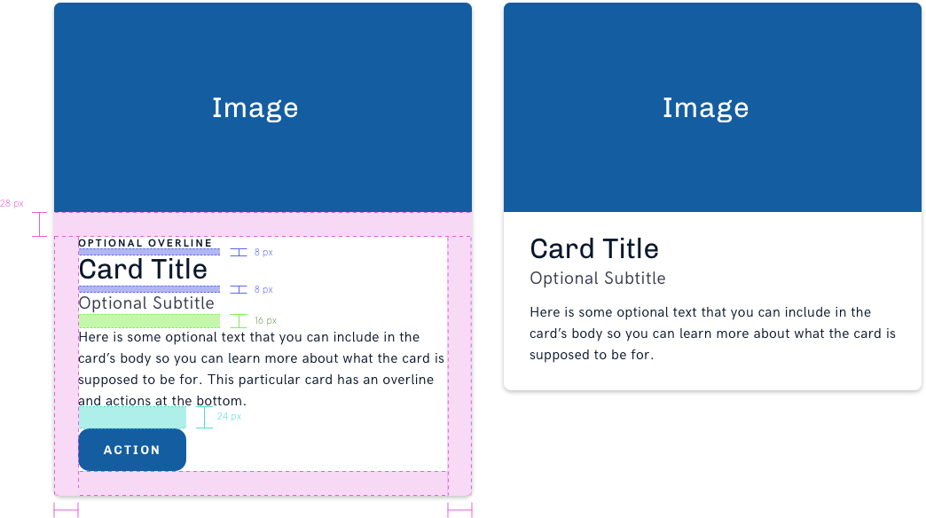 Here is some optional text that you can include in the card’s body so you can learn more about what the card is supposed to be for. This particular card has an overline and actions at the bottom.